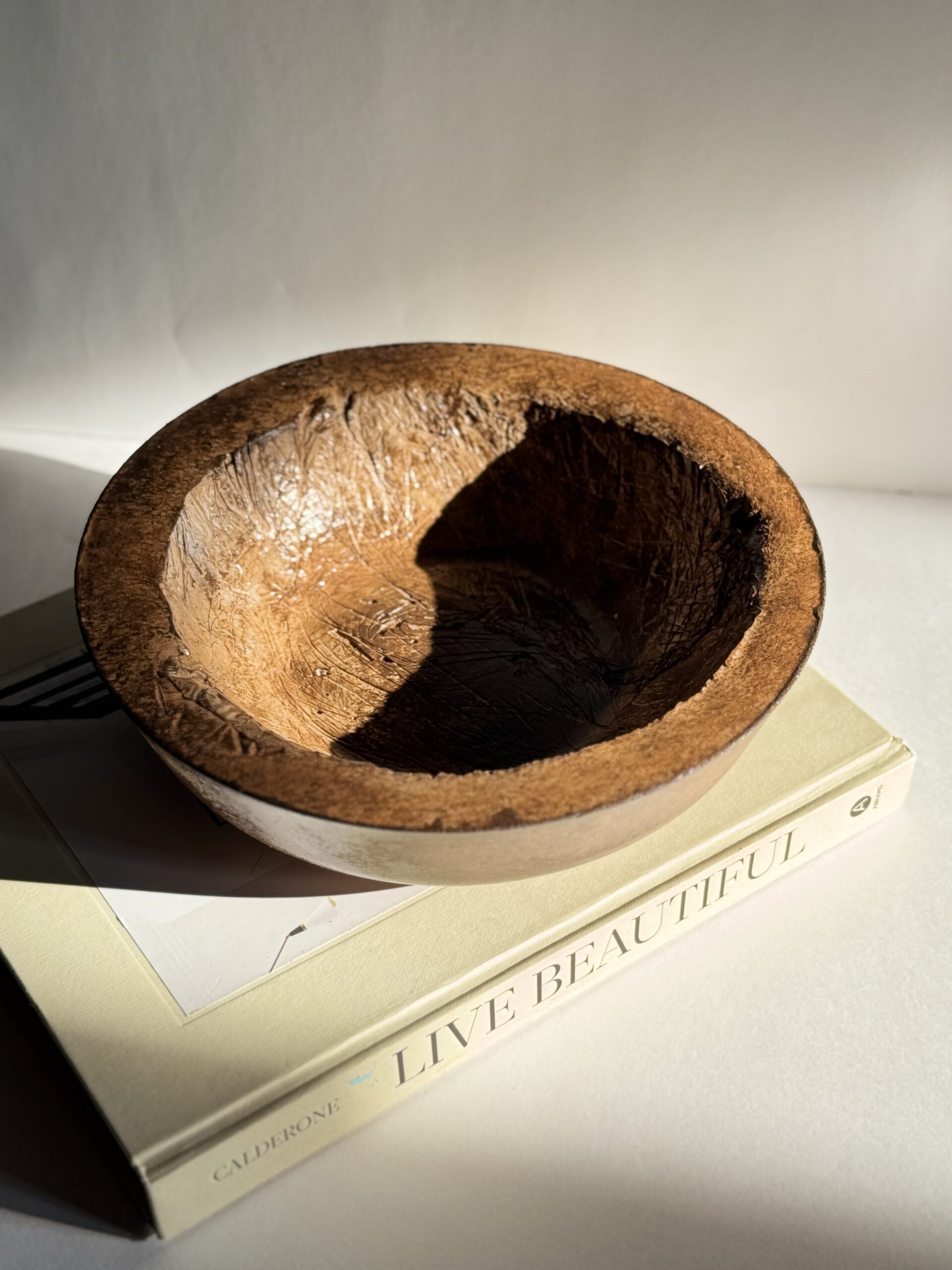 Rooted in earthy expression, the Terra Fade Bowl brings the richness of hand-textured cement to life with a brown acrylic wash that mimics the look of aged pottery. Its soft curvature, raw rim, and organic interior lines give it a timeless character — a functional sculpture for your home. Each piece is sealed with a matte spray for subtle sheen and protection.