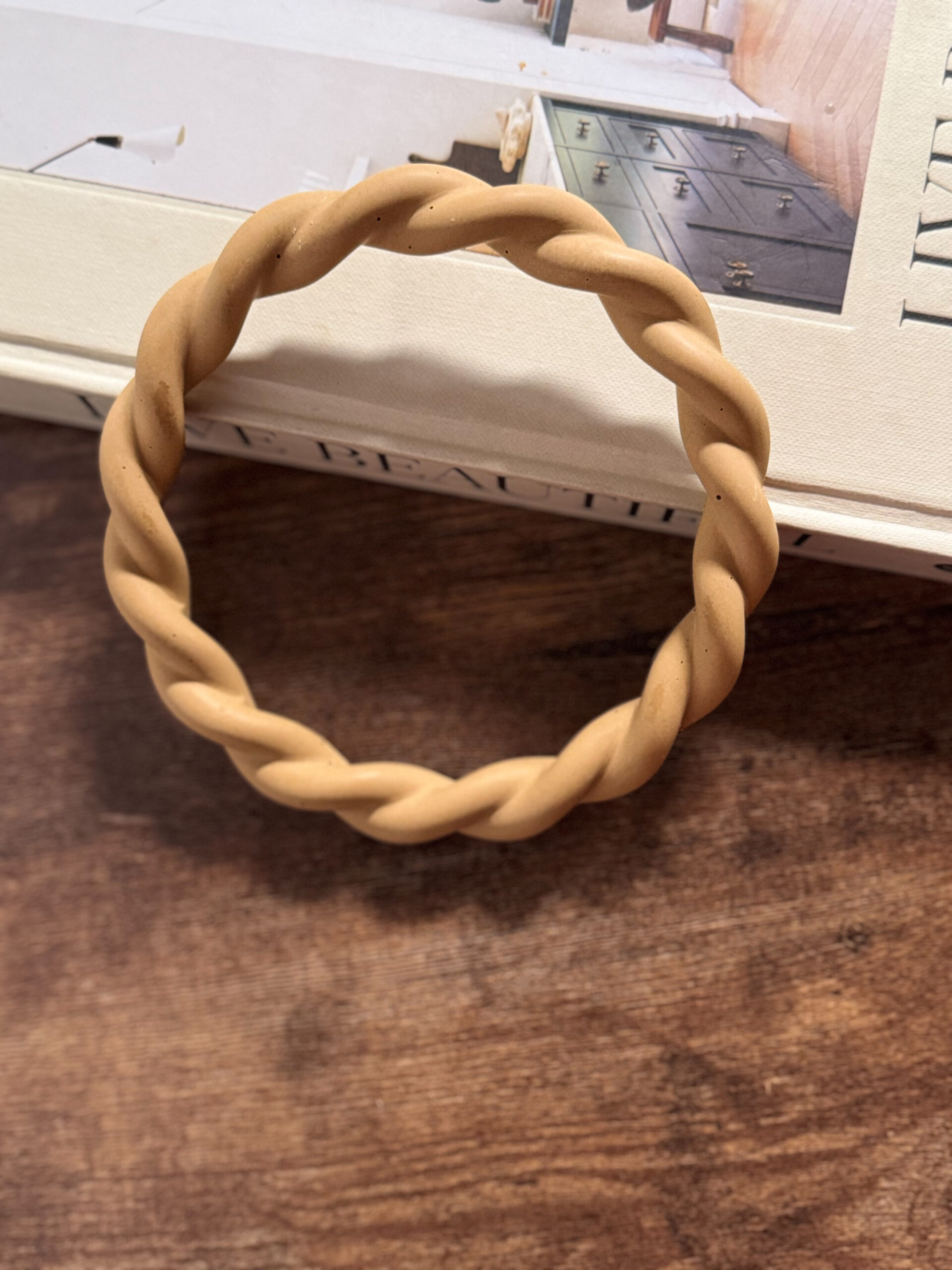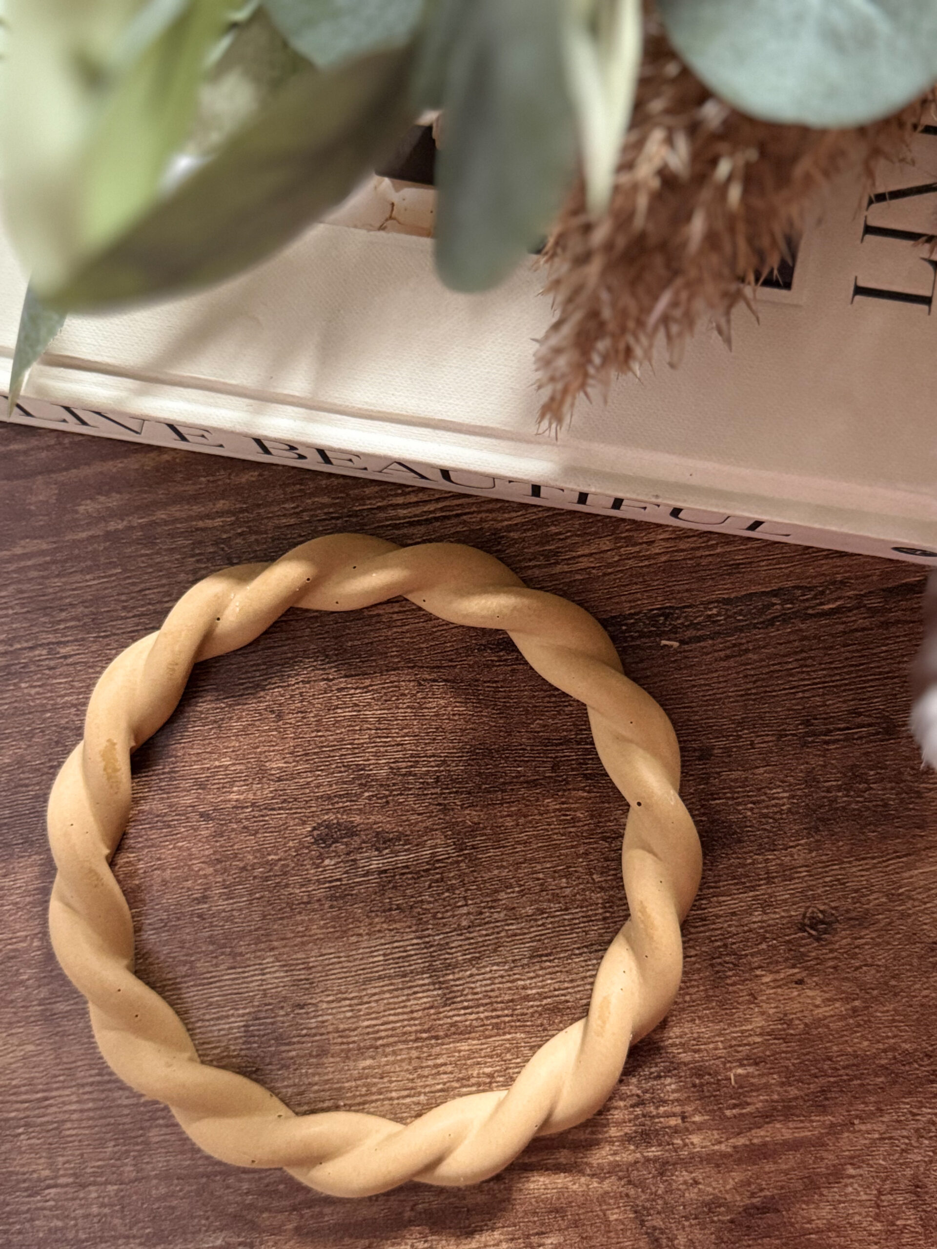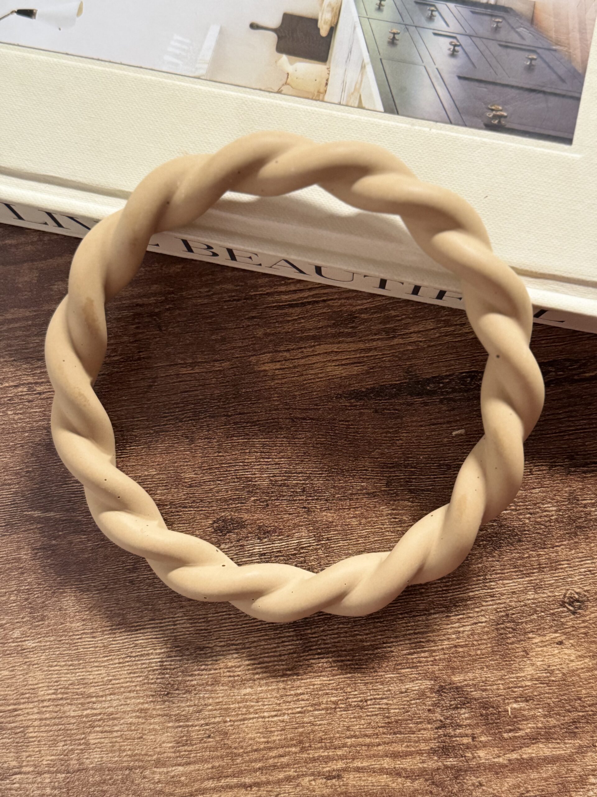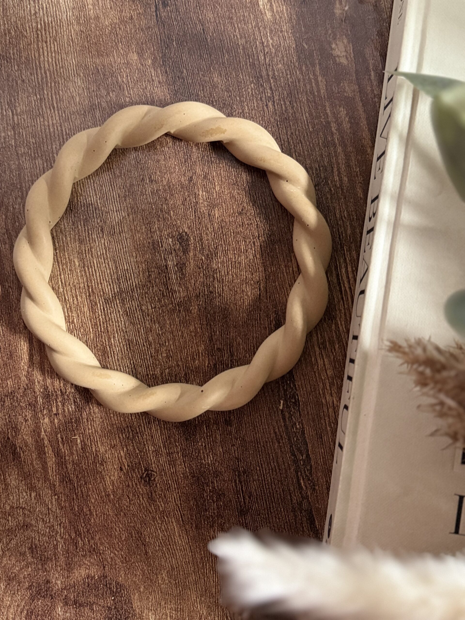A sculptural accent piece crafted in sand brown Jasmonite, the Twine Ring adds texture and charm to any space. Use it as a decorative layer under candles or as a standalone shelf detail. Rustic, minimal, and endlessly versatile.