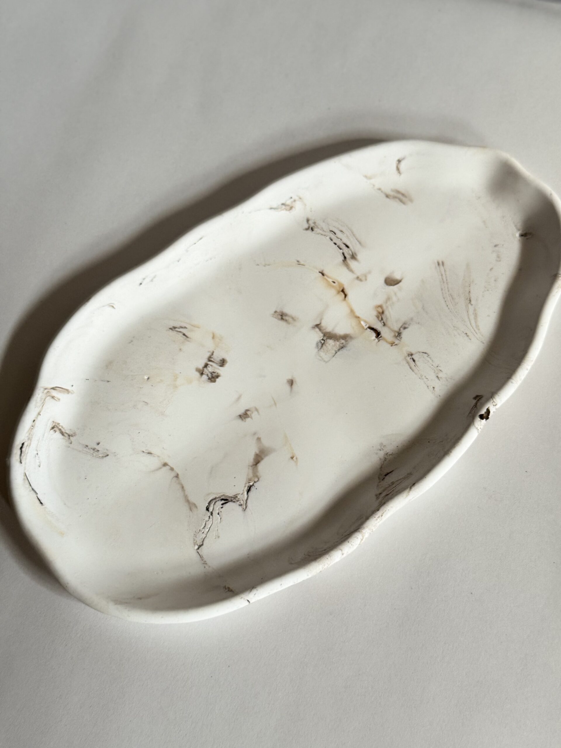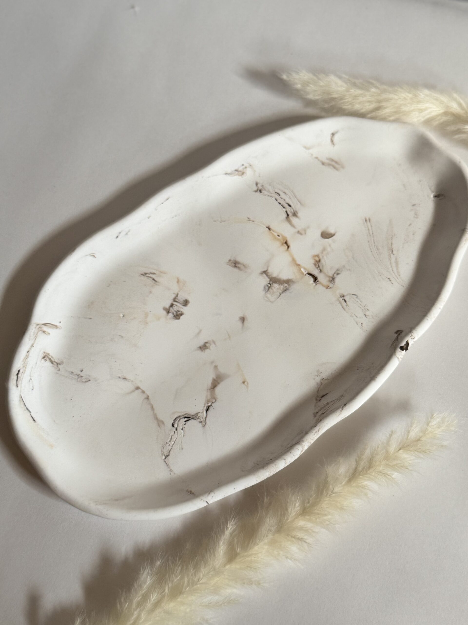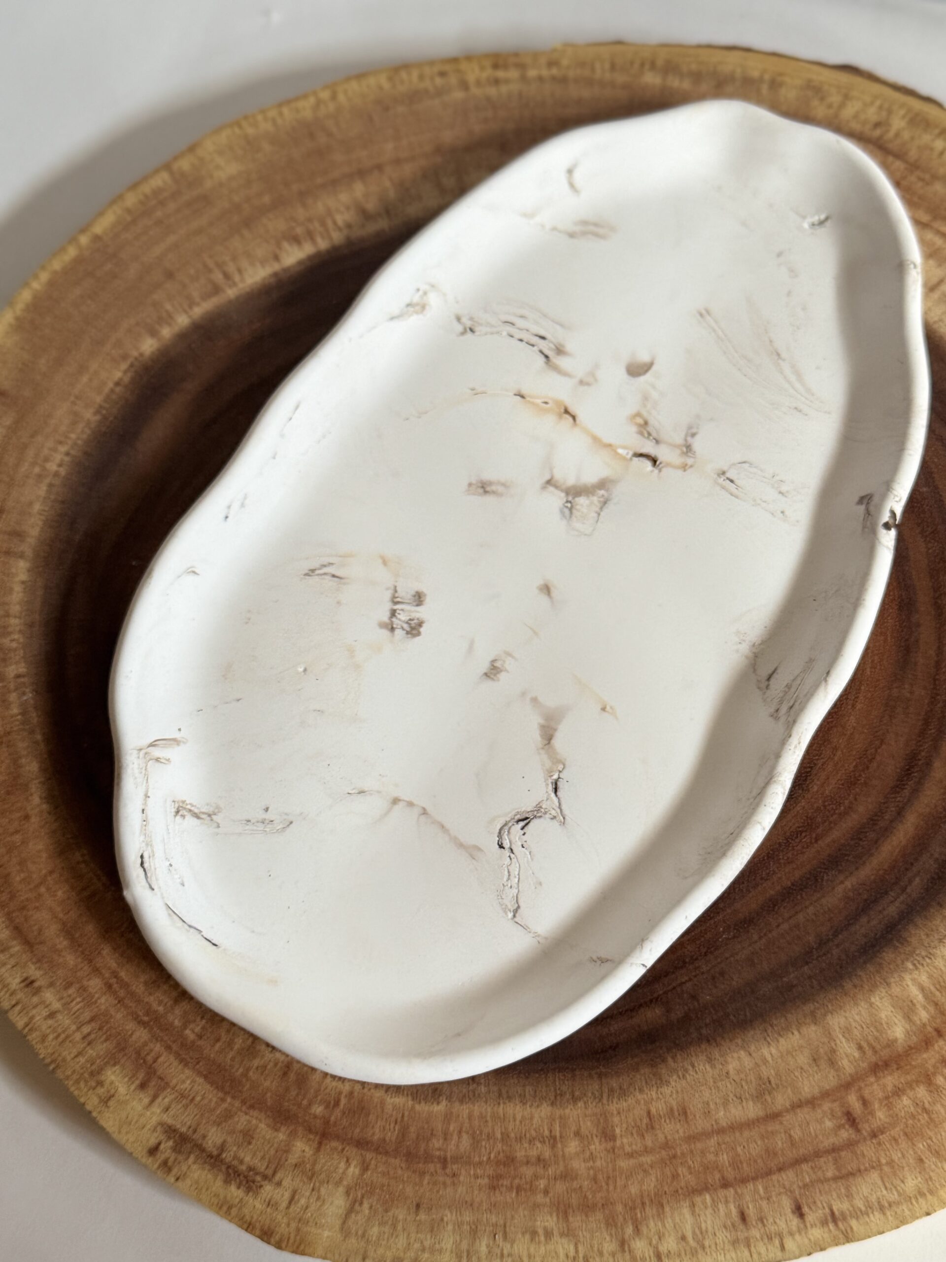 Soft curves meet natural imperfection in the Wabi Oval Tray. Hand-poured from ceramic resin and marbled in warm earth tones, this organic form brings effortless elegance to any space. Its smooth matte finish and flowing edges make it a functional piece of art — ideal for styling candles, jewelry, keys, or incense.
